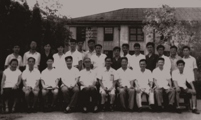 吴山明(后排左起第四位)与潘天寿等老先生合影