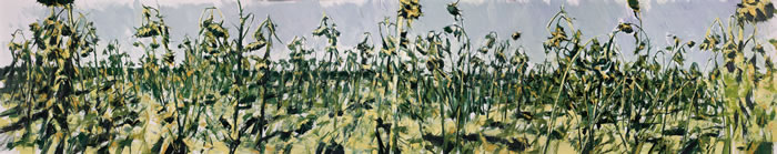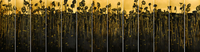 万千葵株,俯仰天地,倔强生长,又终归寂然。葵就是太阳辉映下的众生。仰日即是仰心,画葵即是画人。画向阳花开的一代人。这代人经历了荒芜的少年,经历了骤然变化又不断被开放和点亮的新时期,人生也随之被开放和点亮。今天,那生命的葵盘,既饱含沧桑,又怀抱理想;既充满记忆,又充满坚守与追求。