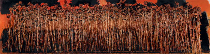 许江的葵在俯仰之间,既仰望心灵之山的高邈,又俯见葵之荒原的苍茫,以葵之四季、燃烧轮回铸炼一代人的精神史诗。