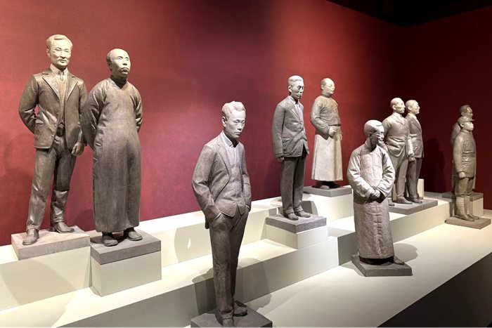 以故宫文物南迁过程中的代表性人物为主题的《“功侔鲁壁”人物群雕》作者:刘恺(摄影:许柏成)