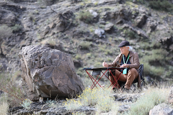 宁夏美术馆馆长周一新、副馆长李东星及胡小敏、耿东海、柳普军、贾峰、陈曦、康泰等青年画家共同参与了此次写生创作活动。这场扎根宁夏大地的写生创作活动,不仅挖掘了西部题材绘画的当代表达,同时为宁夏中青年画家搭建了与老一辈艺术名家一起写生、交流的平台,写生成为连接“老中青”艺术家的纽带,形成了一道艺术的“老带青”风景线。