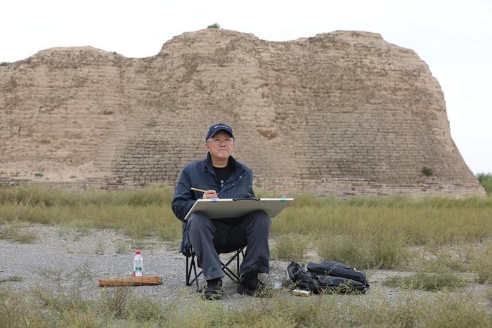 写生团艺术家很快分散到西夏陵的各个角落,从不同角度倾听着千年的故事,默默地用心感悟这里历史的厚重感和岁月沉淀的韵味。用画笔将这段被岁月尘封的历史在艺术的世界里焕发出新的生机与活力。