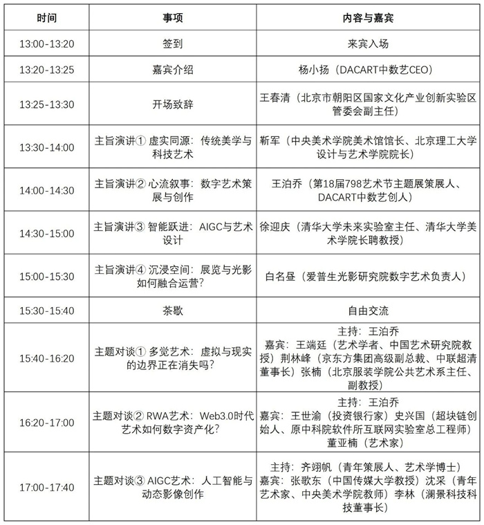 作为艺术节的核心活动单元之一,T.A.B论坛是由DAC中数艺发起,旨在构建科技(Technology)、艺术(Art)与商业(Business)之间的跨界交流平台。聚焦技术进步对艺术创作、策展与产业结构的推动,探讨数字艺术在文化叙事、感官体验与价值体系中的再定义,为当代创作者、研究者与产业参与者提供多维度的思考视角与实践参照。