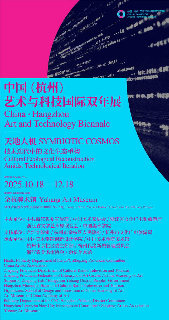 10月18日下午,由中共浙江省委宣传部、中国美术家协会、浙江省文化广电和旅游厅、浙江省文学艺术界联合会、中国美术学院主办的“中国(杭州)艺术与科技国际双年展”在杭州余杭美术馆开幕。作为第三届“良渚论坛”期间举办的国际文化艺术交流活动,通过主题展览与文明对话深化交流互鉴,呈现技术迭代进程中文化生态的重构轨迹和未来图景,展示浙江践行文化建设“八项工程”20年来,在数字文化、艺术科技融合领域的创新成果,回应“文明重光:文化遗产与人类文化多样性”的主题。