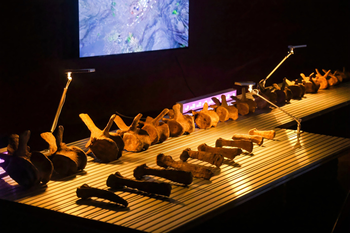 如何在“深时”中记录人类文明,打捞生命埋藏的意义及其垂直的想象?由中国美术学院刘益红团队和中国科学院团队联合打造的《中国恐龙计划|编号20241123》以尤海鲁团队对云南早侏罗世蜥脚型类新标本的实证研究为基础,通过田野寻访、μCT扫描、地层标记、数值模拟与算法描摹,把古生物学“硬数据”转译为可感知的“图像一空间”,经由“恐龙”拓维文明尺度、重估人类纪在生命图景中的新局面。