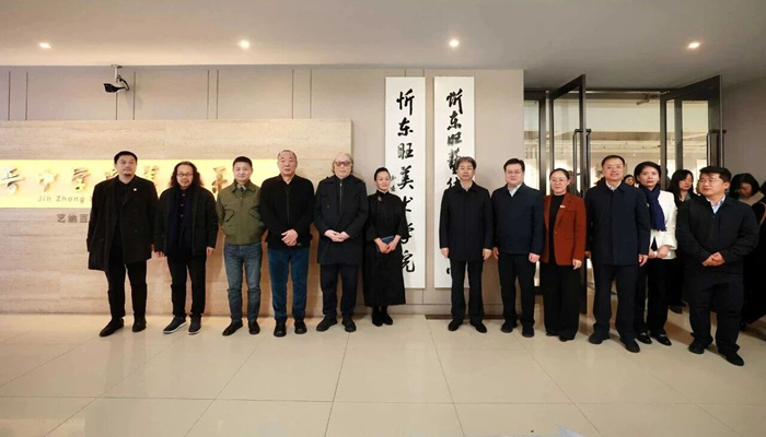 在全体嘉宾的见证下,晋中学院院长刘勇与清华大学美术学院党委副书记马文甲等共同为“忻东旺美术学院”牌匾揭幕。