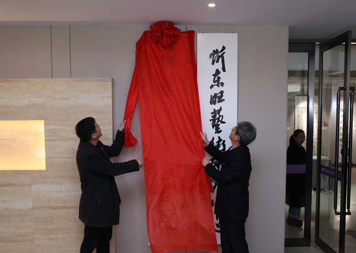 晋中学院院长刘勇与清华大学美术学院党委副书记马文甲共同为“忻东旺美术学院”牌匾揭幕
