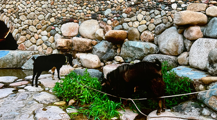 陈文令:我们公园最突出的在地性就是石头很多,我们不可能舍近求远去搬木头、花岗岩、大理石。我就在附近取材,大量降低成本。我们这边有很多古岸,岸边留存着我们列祖列宗的东西,我们不会像某些地方拆掉老祖宗的东西,我尊重了传统的一种建造方式,用溪石,鹅卵石很多,也有很大的石头,我就继承了这种材料的物质性。还有尊重地形本身的特点,有些地方本来就是梯田路,为什么要填上一个广场?村民到溪流旁去洗菜,羊可以去喝水,为什么要拒绝他们下去?