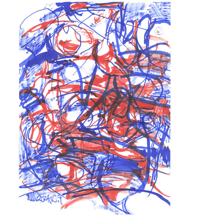 “心象绘画”是徐善循给自己的抽象绘画所取的别称,应该说这是一个高度符合其抽象绘画性质的定义。早在十几年前,本人曾用“心象”和“智象”两个概念分别阐释西方现代抽象绘画中既相互对立又相互依存的两大类型“抒情抽象”和“几何抽象”,指出前者来自于画家之心而作用于观众之心,也就是说,建立在心理学基础上的“抒情抽象”关乎人的喜怒哀乐的表达和共鸣;而后者则来自画家的大脑而有益于观众智慧的提升,换一句话说,以数学为依托“几何抽象”旨在揭示宇宙万物内在的规律和秩序。但是,就徐善循的抽象绘画而言,这里的“心象”还不仅仅是“抒情”,而是还带有“写意”的因素。我们知道,在汉译英的过程中,中西学者通常将中文“写意”翻译为英文“expression”(表现)。而作为一个中国画家的抽象绘画,徐善循的“心象绘画”恰恰就是“抒情”与“写意”相结合的产物。