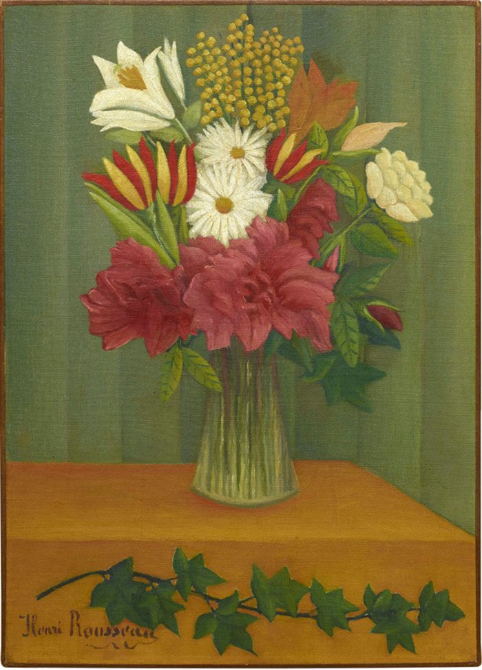 亨利·卢梭(1844-1910,法国),《带常春藤枝的瓶花(第一版)》,1901-1902年