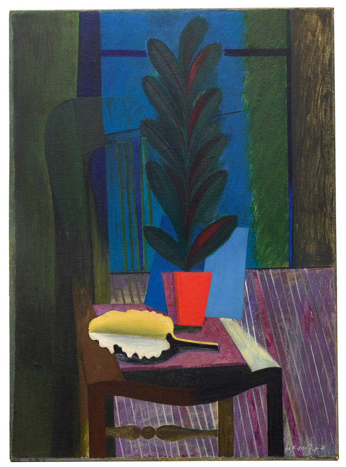 荷裔美国抽象表现主义重要代表德库宁创作《静物》时年仅25岁,刚刚移居纽约没多久。从中既能看到荷兰静物传统与风格派艺术的影响,也能窥见两年前观看马蒂斯展览带来的启示——据说德库宁在看过马蒂斯的作品后是这样说的:“我要去画自己的马蒂斯了。”