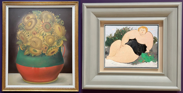 左:费尔南多·博特罗(1932-2023,哥伦比亚),《向日葵》,1976;右:吴冠中(1919-2010),《泉》,1995