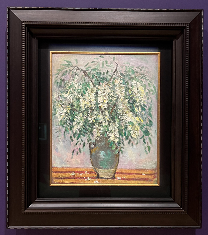 丰子恺先生曾言雷诺阿“甘美而有力”,莫奈是“最模范的向日葵派的画家”,而将“天真纯洁的‘世间的珍客’”用在了亨利·卢梭身上。常设展新增一幅亨利·卢梭的《带常春藤枝的瓶花(第一版)》,在沉静纯真的构图中,潜藏着艺术家对两次婚姻宛转隐秘的心曲。花卉静物在卢梭的创作中极为罕见,目前所知仅十幅,此幅作品为其中名品,曾长期借予纽约现代艺术博物馆(MoMA)展出,并参加该馆1942年的卢梭回顾大展。