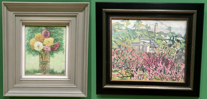 右:倪贻德(1901-1970),《桃花灼灼》,1960年代