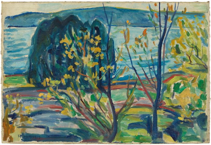 爱德华·蒙克(1863-1944,挪威),《峡湾风景》,约1918年