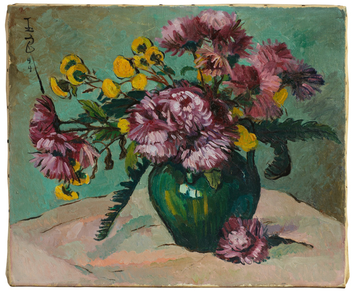 潘玉良(1895-1977),《青瓶红菊》,1944