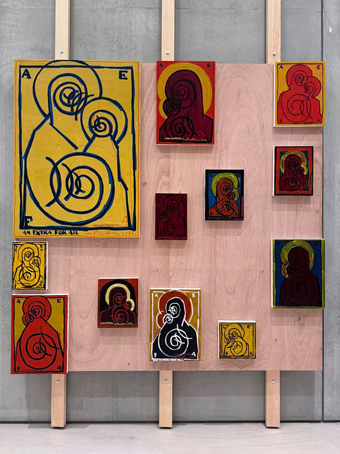 更进一步,艺术家甚至在“括号”的形式基础上发展出“扩旋”,用这种看似简单的语法工具重构了艺术史经典肖像,完成了一场对经典符号系统幽默而深刻的“篡改”。