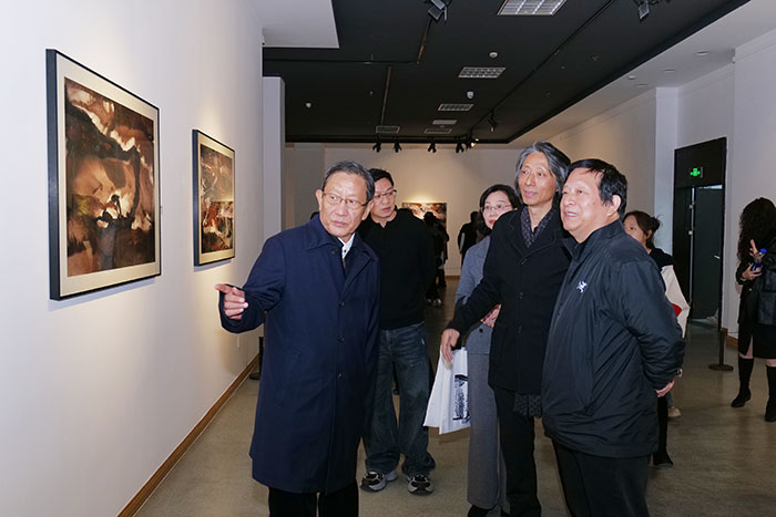 当天,展览学术主持、中央美术学院油画系教授刘商英,中国人民大学艺术学院教授刘明才,北京电影学院教授何澄,中国美术学院教授吴方,新疆维吾尔自治区吐鲁番市鄯善县罗布泊历史博物馆馆长武宗云,江苏省文学艺术界联合会副主席、江苏省美术家协会副主席、中国工笔画学会副会长徐惠泉,原苏州市委宣传部副部长、苏州市中共党史学会会长高志罡,苏州市委党史工作办公室二级调研员、苏州市中共党史学会副会长诸晓春,常熟市政协主席沈晓东,原常熟市人大常委会主任、常熟市对外文化交流促进会会长秦卫星,常熟市文体广电和旅游局副局长王筱虹,常熟市美术家协会主席顾晓东,苏州工学院党委副书记李俊峰,苏州工学院副校长王继元,原常熟理工学院党委书记许霆等领导和专家出席开幕式。