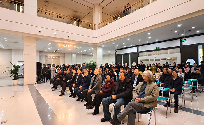 2025年11月29日,“心纳万象”赵东诚绘画作品展在常熟美术馆开幕。展览展出赵东诚近十年来行走内蒙古、新疆、西北等地,以胡杨、戈壁、漠野、江南荷塘为题材与意象创作的90余件绘画作品,集中呈现了赵东诚近年来以绘画探索表达“心象”的艺术实践,不仅展现了艺术家在创作题材与精神维度上的大胆开拓,亦映照出其个人绘画语言与艺术面貌的重要转折与蜕变。