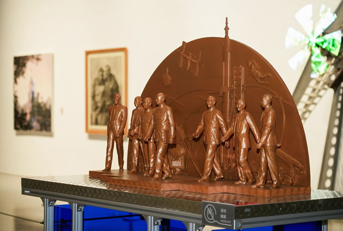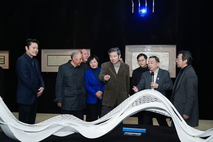 中国文联党组成员、副主席、书记处书记诸迪观看展览作品《光谷综合体地面景观——星河》(湖北美院文化发展有限公司公共艺术作品)