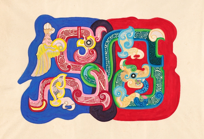 《家》 2022年 100cm×100cm宣纸、颜彩、矿物质颜料