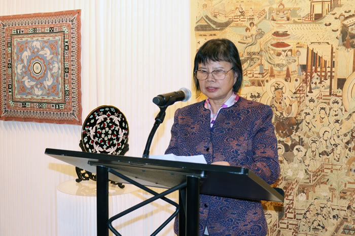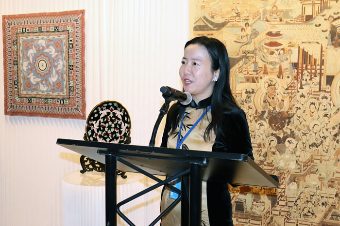 北美清华校友会联合会会长任刚表示,敦煌不仅是中华文明深厚底蕴的象征,更体现着开放、包容与文化交流的精神。她指出,清华大学美术学院师生的创造力为敦煌艺术注入新的时代活力,使敦煌艺术在当代语境中焕发光彩。此次将敦煌艺术研究成果带到联合国展示,是中国文化在国际舞台上的重要呈现,也将清华精神传递给国际社会,进一步体现了当代中国青年以艺术促进文明互鉴、以创意推动文化对话的担当与实力。