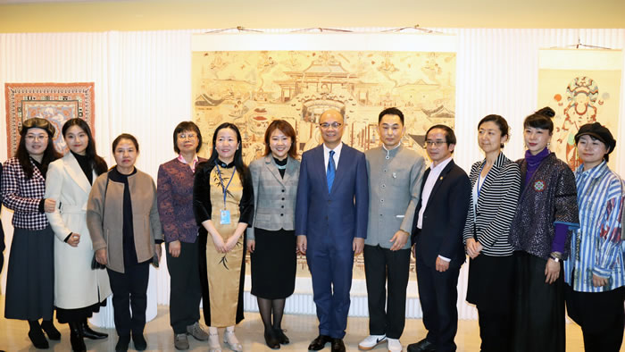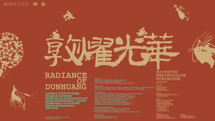 2025年12月8日,“敦耀光华——清华大学美术学院敦煌艺术研究及设计成果纽约联合国总部特展”在美国纽约正式开幕。本次展览由清华大学美术学院、联合国中国书会和北美清华校友会联合会共同主办,清华大学美术学院染织服装艺术设计系与北美清华美院校友会联合承办,原中央工艺美术学院院长、清华大学教授常沙娜担任总顾问。