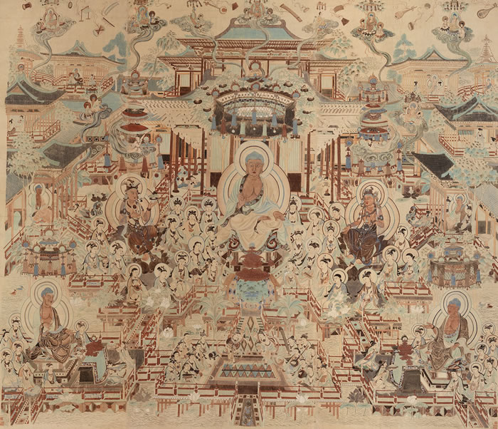 常沙娜,《莫高窟盛唐第72窟观无量寿经变临摹》(复制品),1946