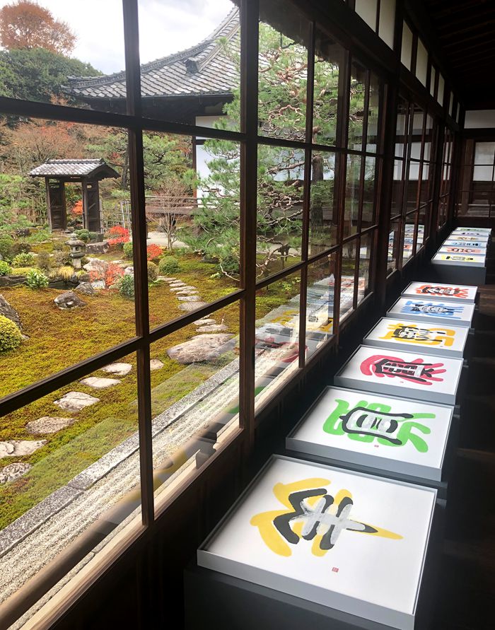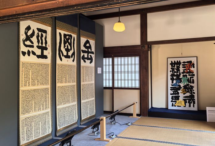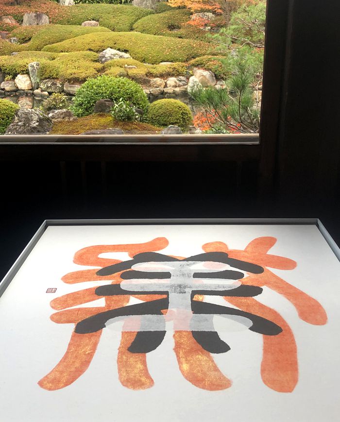 建仁寺两足院历史悠久,静谧清幽,康健一的书法作品与寺院建筑、枯山水与曲水流觞等相融,汉字艺术与禅宗庭院相互映照,向观众呈现一场“游观式”的心灵修行体验。