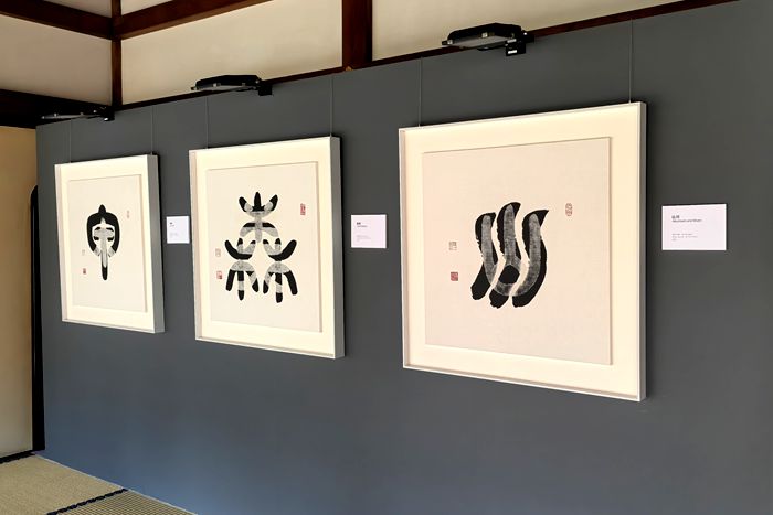 本次展览展出的“自然”“轮转”“心”“未来”“空”等作品系列以不同手法在汉字的形与意、当代审美与东方思维之间建立起一座桥梁,引导观众超越汉字本意,进入更深的哲学思考。在两足院的枫声苔色间,这些墨迹如同艺术家的心印,邀约观者驻足、凝神,在万千物相之中,照见自己。