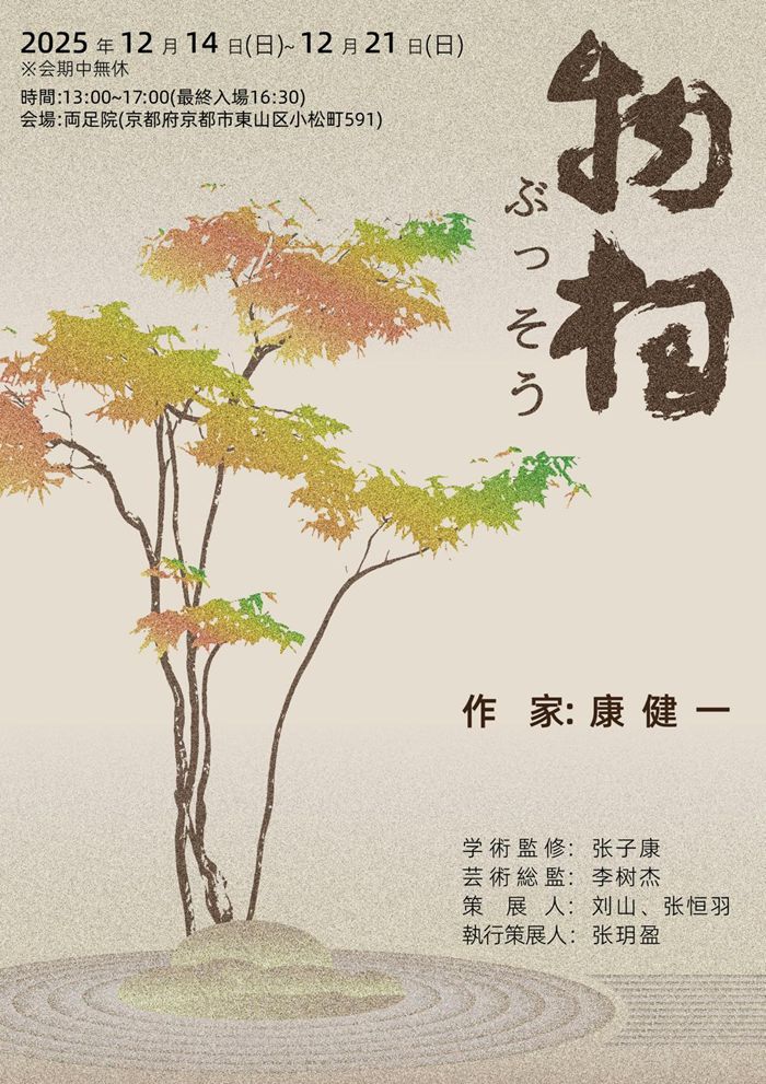 2025年12月14日,中国艺术家康健一“物相”禅境书作展在京都建仁寺两足院开幕,这是其今年9月在东京上野之森美术馆承办举办“无界·健一·渡”书作展后,举办的第二次国际个人作品展。