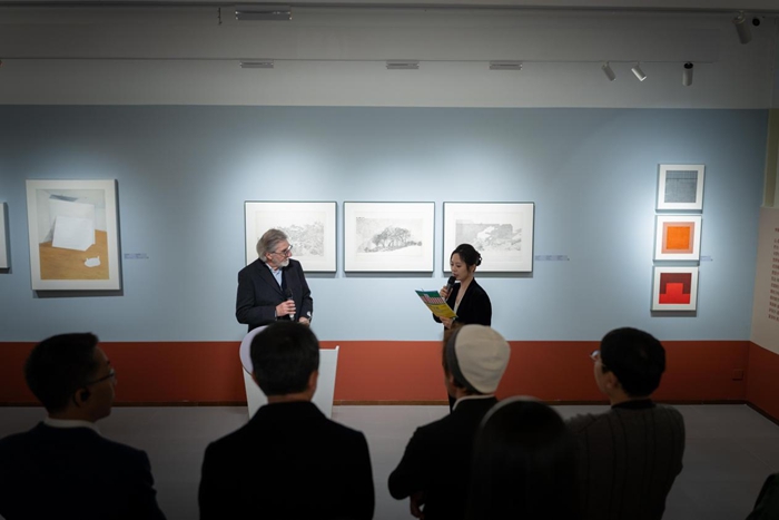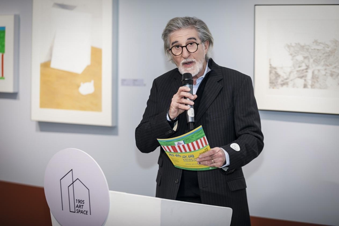 “形色之间”开幕现场,“形色之间”策展人、法国新现实协会主席奥利维耶·迪·皮齐奥(Olivier Di Pizio)致辞