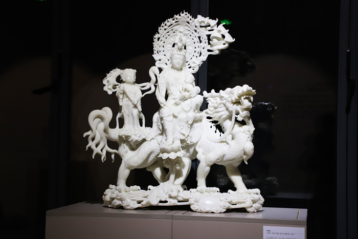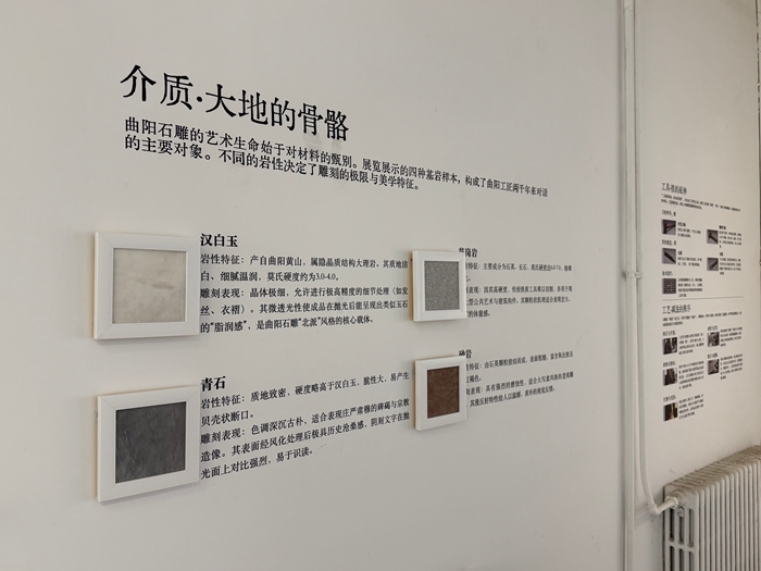 展览现场对曲阳石雕材质和工艺的介绍