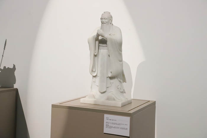 刘同保的《孔子》利用汉白玉的半透明晶体结构,通过光线的渗入与折射营造出肌肤般的温润感;其衣纹处理承袭“曹衣出水”的传统,将书法的线条韵律融入三维空间,赋予了“礼”以秩序感。