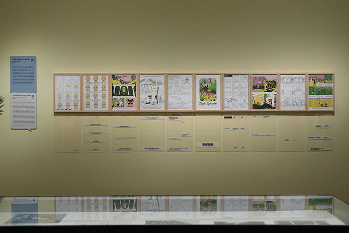 本次展览希望以更柔软、更亲切的方式,让观众在作品之间自由漫游。展厅以鲜明的大色块、巨型装置和仿佛从书页中跃出的错视漫画场景,营造出轻盈、愉悦的“魔法时刻”,让人不自觉地放慢脚步。展厅中也隐藏着许多可“翻开”细节:从平面漫画延伸出的立体书;从作品内容生长出的跨次元小场景;以及为读者准备的 1:1 透明翻译卡,只需轻轻覆盖在原作上,便能轻松读懂故事,又不打扰画面的呼吸……