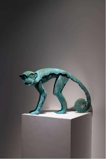 《花花动物园——猴猴》,玻璃钢仿青铜,2022年,长度70厘米