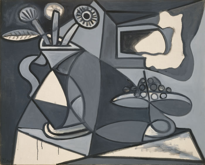 巴勃罗·毕加索,《花瓶与果盘》,1943年9月14日,布面油画,80.5 x 100 cm