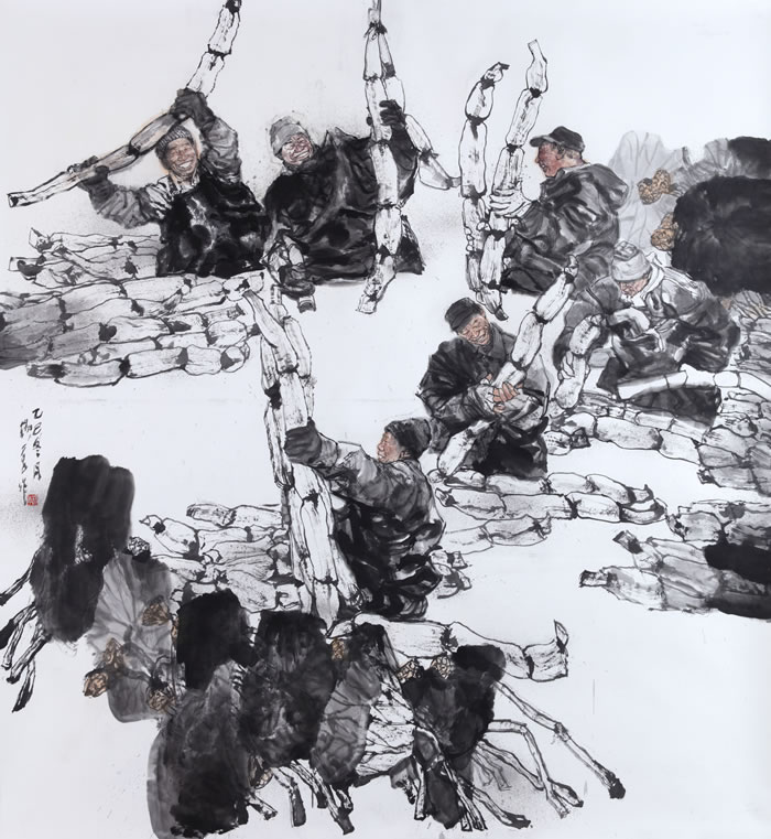 杨季 白洋淀里笑声浓——荷塘挖藕人 200cmx219cm