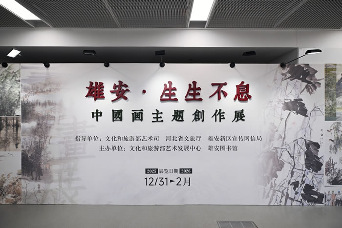 2025年12月31日上午,“雄安·生生不息——中国画主题创作展 ”在雄安图书馆一层中庭开幕。