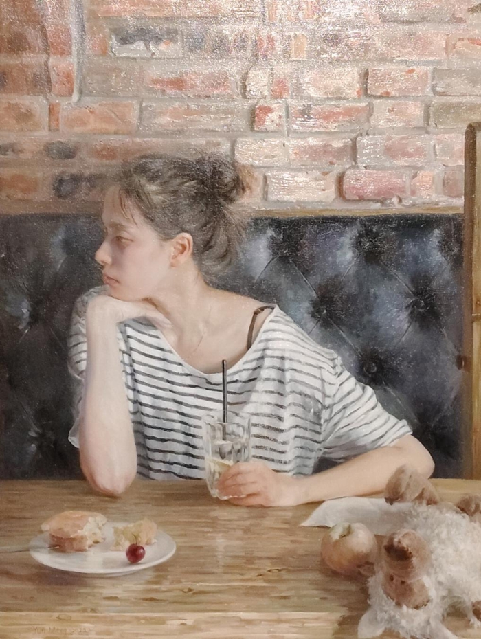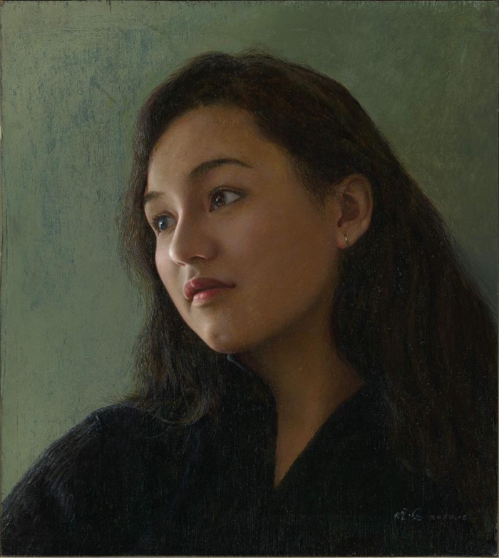 值得注意的是,刘延明虽延续西方古典肖像的构图传统,却在空间结构与视觉层次上进行了自觉的本土化转译。他通过压缩景深、弱化透视强度、调和虚实过渡等手法,营造出一种平面性与氛围性并存的诗意空间。他借助古典油画的材质语言,完成了对东方含蓄美学与人文温情的当代诠释。