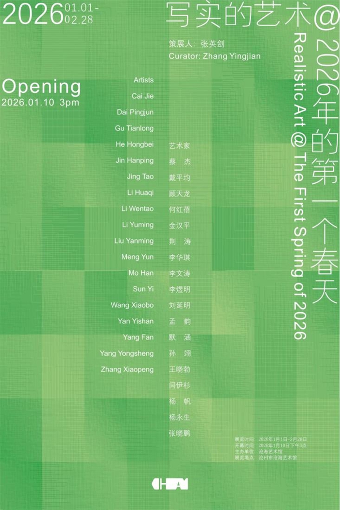 2026年1月10日,位于渤海之滨的狮城沧州,沧海美术馆迎来新年首展——“写实的艺术@2026年的第一个春天”。本次展览汇集了来自中央美术学院、中国美术学院、中国艺术研究院等知名院校的18位中青年艺术家,共展出33幅写实类作品。
