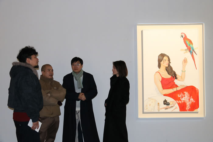 中国国家画院油画所所长赵培智、中央美术学院教授、博导孙逊观展