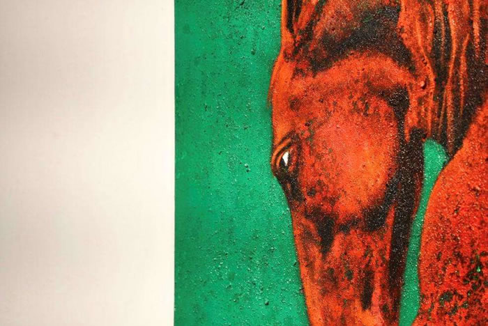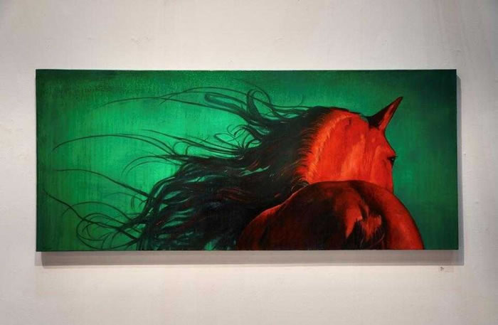凝视“午马”,呈昕看到的已不限于色彩象征,而是一个时代的缩影。我们正活在某种“午马时刻”:科技之火燎原,信息如马蹄奔袭,世界在高速中连接,亦在疾驰中割裂。然而,单极向前的“火”性推进,也灼烧出文明的焦渴——心灵在狂奔中失重,自然在扩张中喘息,文化在喧哗中渐哑。此时,“绿”便不只是一种颜色,而成了一种调节的语法:它是疾奔中的一次深长呼吸,是向前时不可或缺的回望。