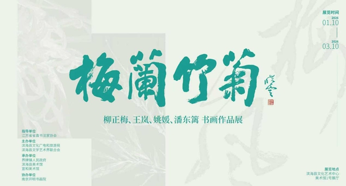 2026年1月10日下午3时,“梅兰竹菊——柳正梅、王岚、姚媛、潘东篱书画展”在江苏省盐城市滨海县美术馆开幕。展览汇集四位当代金陵女艺术家的精品力作,呈现出她们在传统文人画精神基础上的当代探索与个性表达,展现了江南文脉在女性艺术创作中的传承与创新。