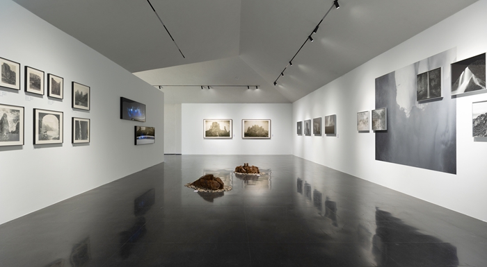 “林风低语”板块位于灵岩景区附近的雁荡书院,以摄影、装置与雕塑为媒介,呼应空间自身的气质,以“山水的自语”为线索展开叙事,将人为的阐释让位于物与景的自我呈现。步入展厅,一组上世纪四十至六十年代的雁荡历史影像与多件当代摄影作品被并置陈列。不同时代的镜头于此静默地对照,它们之间仅相隔数米,却构建起一处跨越八十年连接往昔与当下的廊室。