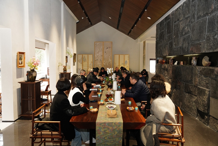 当天下午,“山海风·雁荡艺术大展”艺术家圆桌研讨会在雁荡书院内举行。参展艺术家、策展团队与相关学者齐聚一堂,围绕“山水·在场”这一核心议题,展开了深入而富有层次的对话。艺术家们结合各自的创作实践,探讨了传统山水美学如何与个体经验、当代视觉语言相融合。从材料的选择、现场的介入方式,到作品与场所最终形成的共生关系,不同世代的艺术家呈现了相异却互补的思考路径。