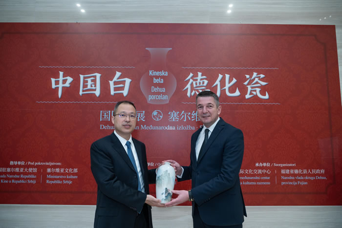 1月30日,“中国白·德化瓷”国际巡展在塞尔维亚贝尔格莱德市的贝尔格莱德文化中心开幕。展览由中国驻塞尔维亚大使馆、塞尔维亚文化部指导,贝尔格莱德中国文化中心、贝尔格莱德一带一路研究所联合主办,中国国际文化中心、德化县人民政府承办。