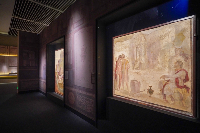 展览特别设置了3个沉浸式展项,通过前沿科技与严谨学术的结合,为观众创造独特的观展体验。其中,通过多媒体装置,观众可以“走进”从未对外开放的希腊化豪宅“农牧神之家”,欣赏其精美的地面与天花板装饰。虚拟重建技术则让观众直观感受庞贝三百年的发掘全过程,理解这座古城与罗马之间的复杂关系。