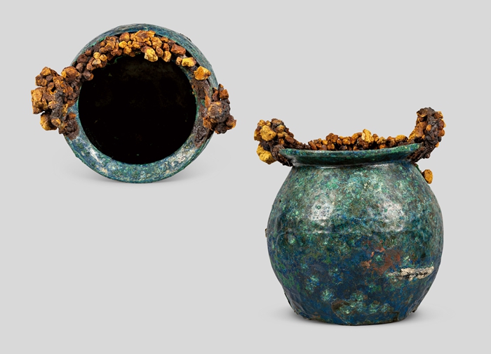 出土于热食店的带火山凝结物青铜小桶,则见证了庞贝市民的日常生活。在古罗马城市,大多数平民居住在缺乏烹饪设施的公寓中,热食店因此成为社区生活的重要枢纽。庞贝城内已发现八十余处此类店铺,而这件小桶正是这一公共饮食文化的物证。附着在其表面的火山浮石,默默诉说着那场改变一切的灾难。