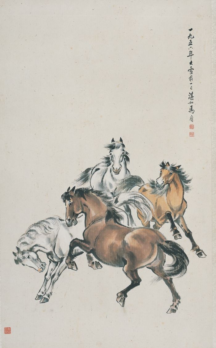 《四马图》马晋 100×60cm 纸本设色 1956 北京画院